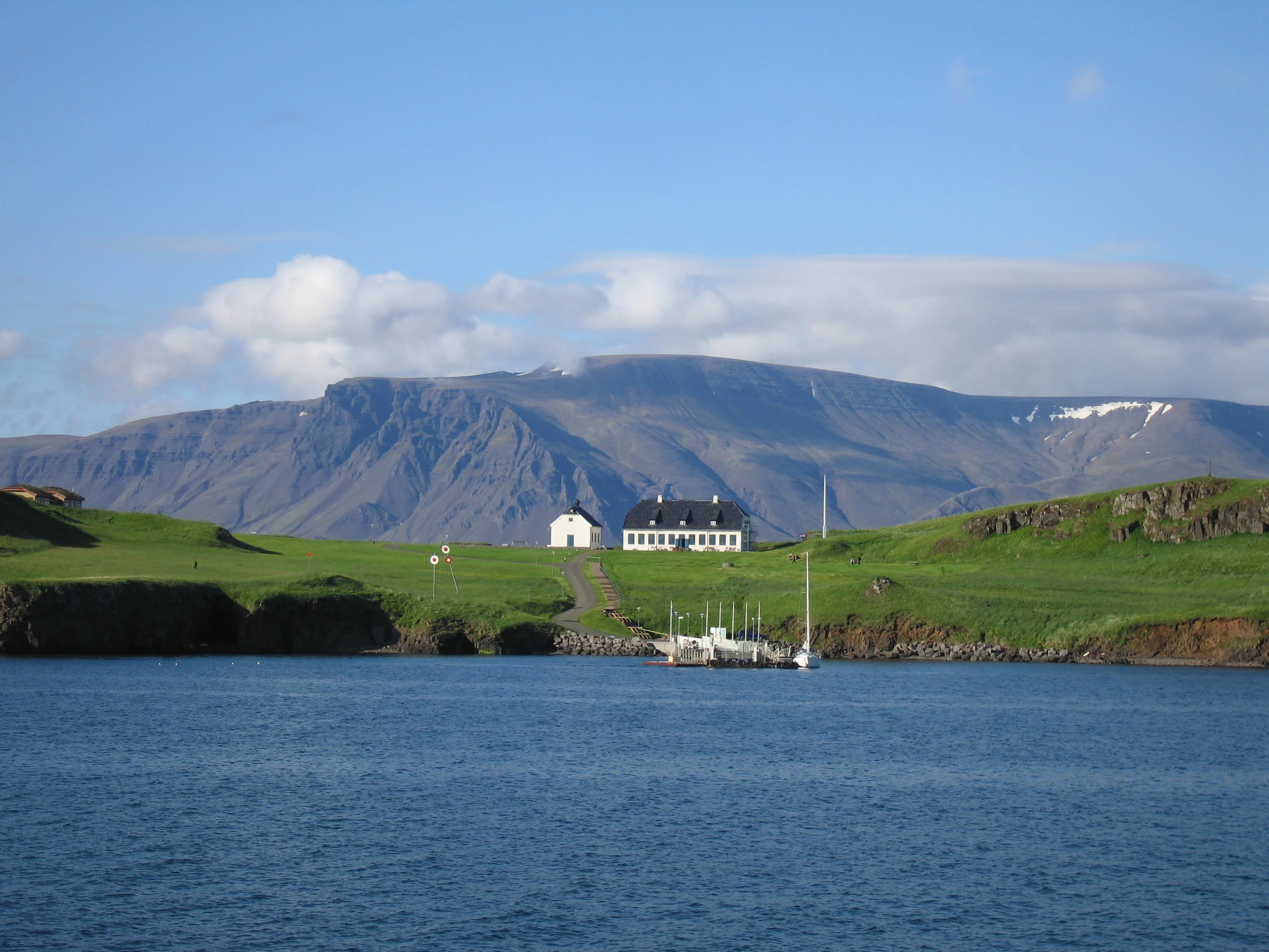 Viðey is the largest island of the Kollafjörður Bay in Iceland, near the capital of Reykjavík. The island has archaeological remains dating back to the early 10th century and was the site where the "father of Reykjavík" Skuli Magnusson constructed his home and a church in the 12th century. From 1225 to 1539 an Augustine Monastery was established on the island. The island's last inhabitants left in 1943. Today the island houses a handful of structures including a small church Viðeyjarkirkja and the Viðeyjarstofa House constructed in 1755.